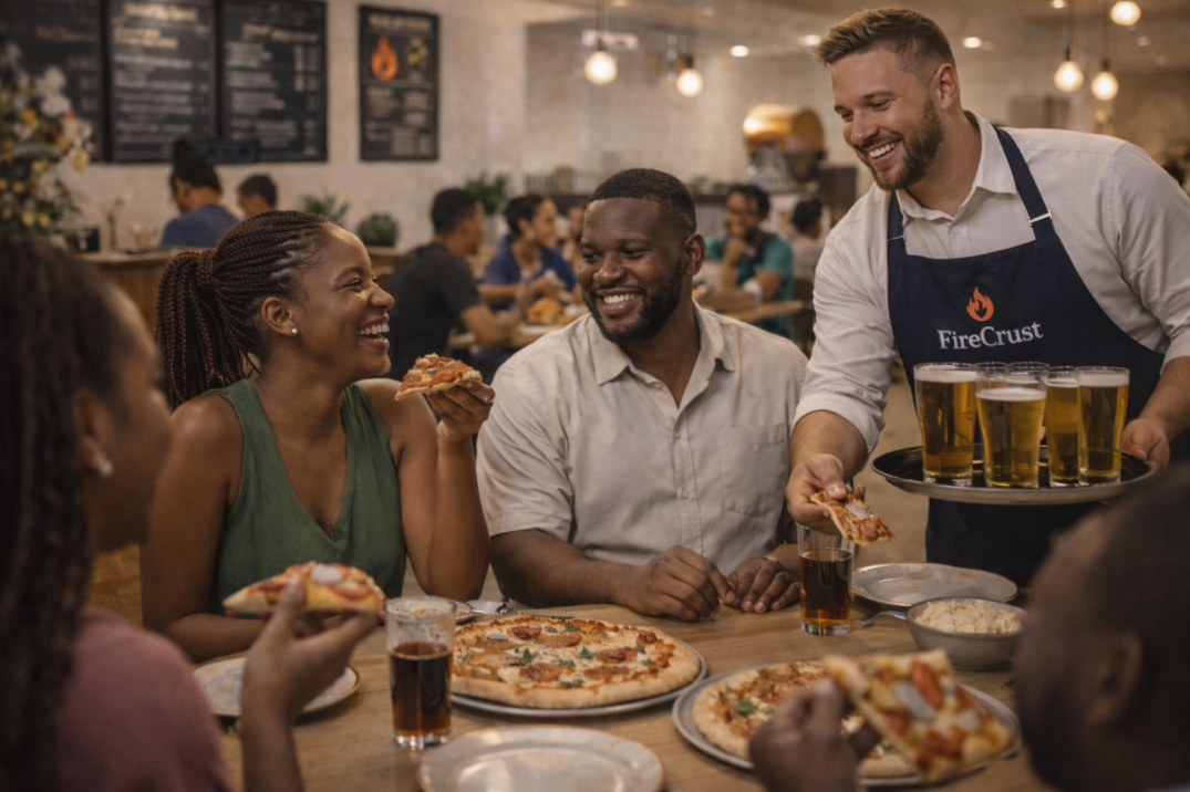 FireCrust Pizzeria blends fast food convenience with lifestyle dining experience, allowing customers to enjoy fresh meals while creating social dining memories.